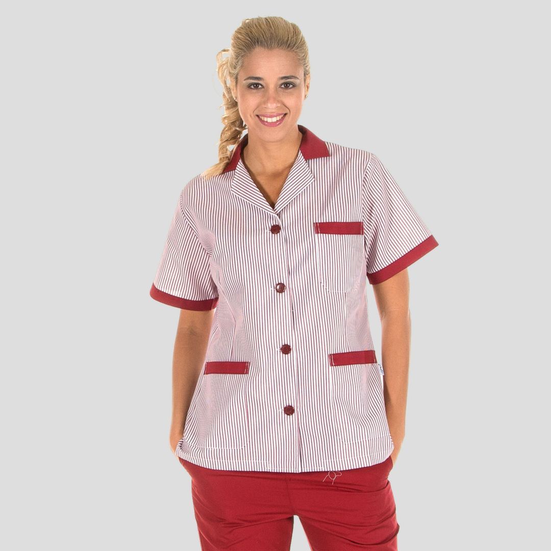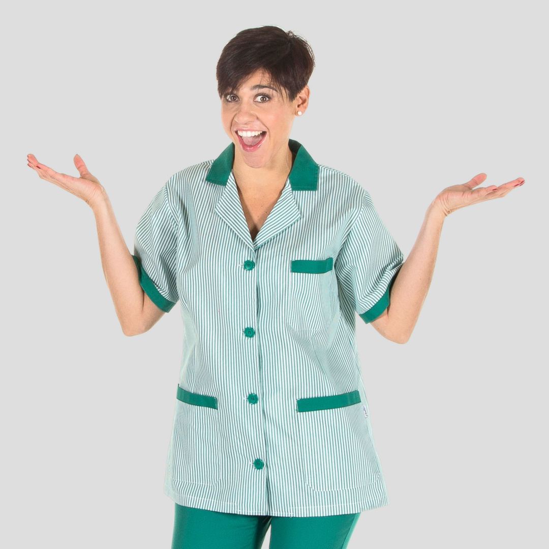 Bata de manga corta a rayas básica con una gran resistencia a los lavados y a los productos de limpieza.