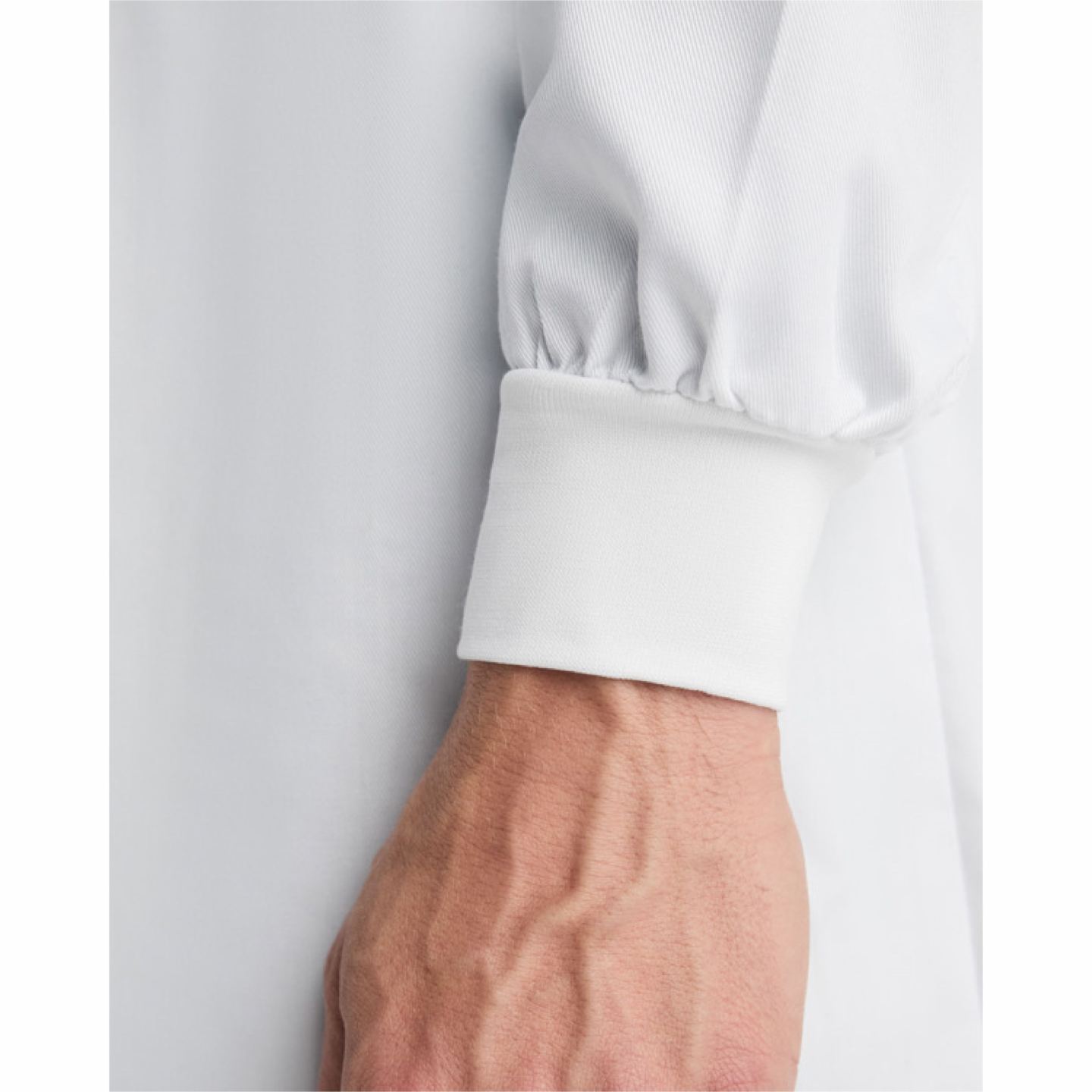 - Ajuste Seguro: Puños en punto canalé (rib) 1×1 que aseguran la manga a la muñeca, ideal para manipular instrumental o alimentos.
