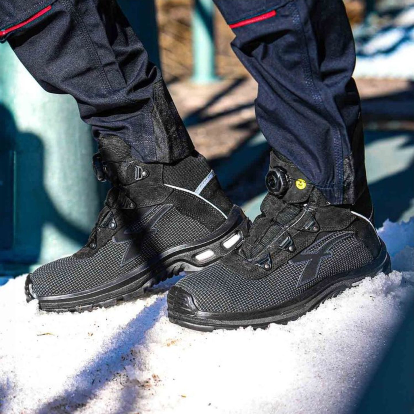 El calzado de seguridad U-Power Kora integra tecnologías de alto rendimiento para entornos industriales extremos. La combinación del sistema de ajuste rápido BOA Fit System con la membrana impermeable GORE-TEX garantiza un aislamiento perimetral completo frente a fluidos, manteniendo la transpirabilidad térmica. La estructura incorpora la tecnología de retorno de energía Infinergy en la entresuela, reduciendo la fatiga muscular durante jornadas prolongadas sobre superficies rígidas.