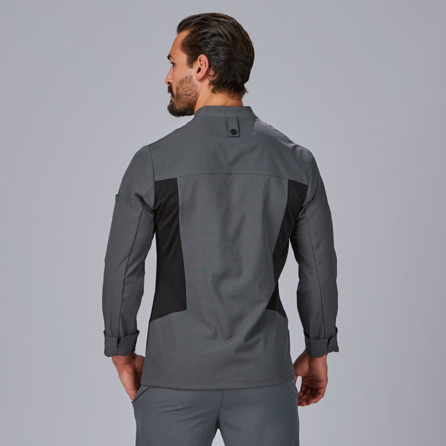- Manga larga con puños vueltos y costura en codo: Ergonomía y protección.