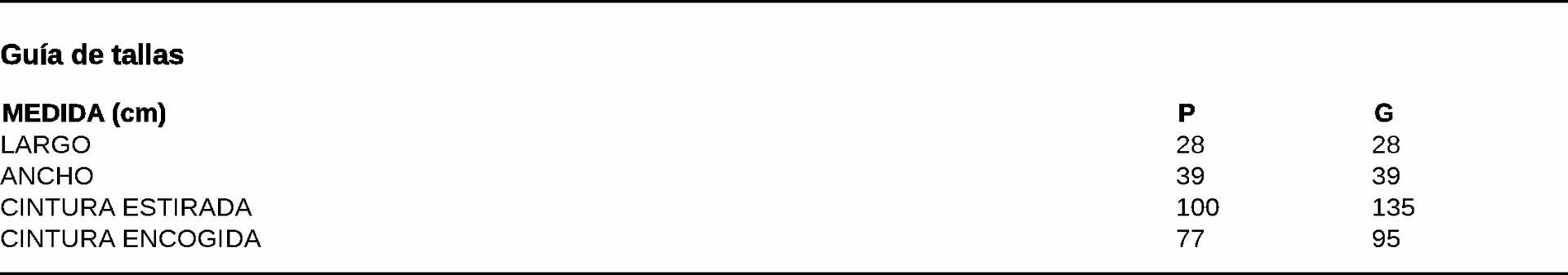 Guía de tallas para Delantal Monedero Corto Dubai Garys 1482