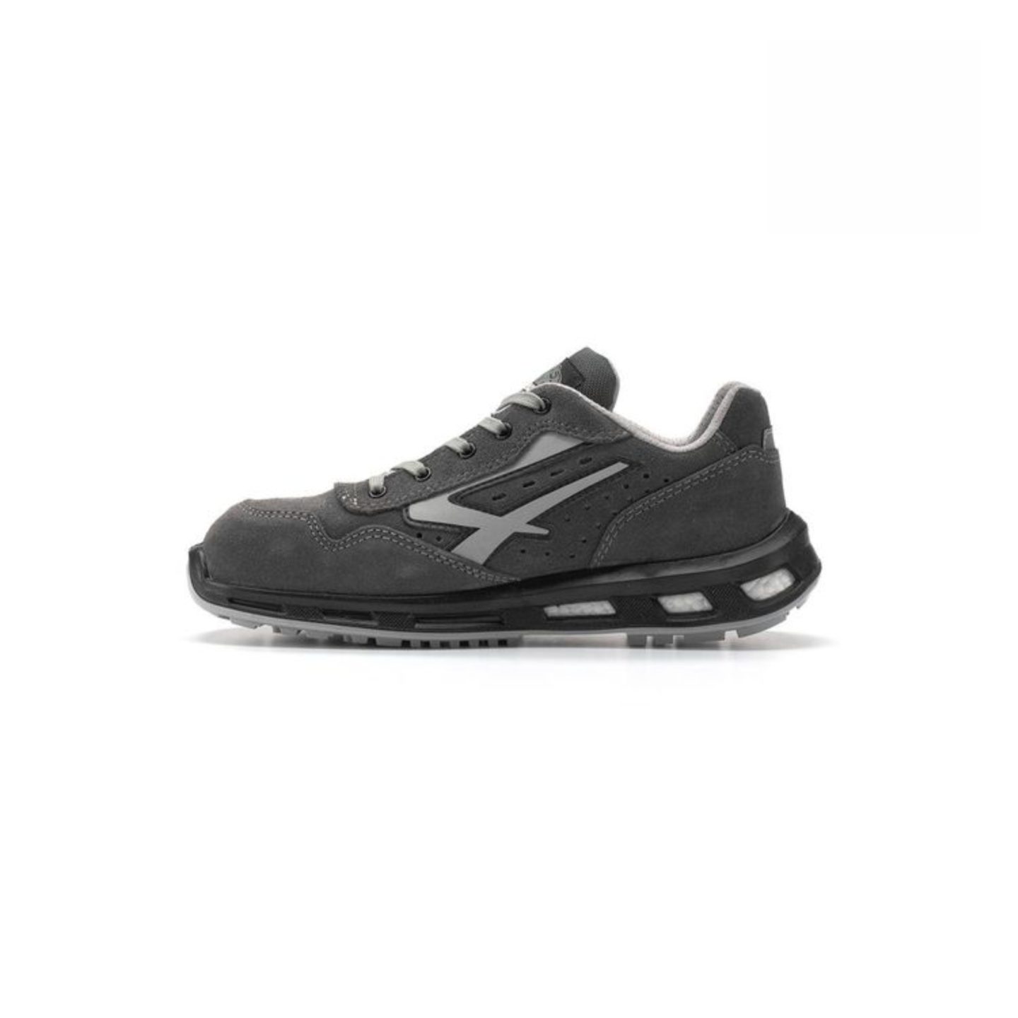 La arquitectura superior de estas deportivas de seguridad U-Power Red Lion emplea piel afelpada perforada. A diferencia de los materiales sintéticos cerrados, la gamuza natural con microperforaciones permite un flujo de aire constante. Al combinarse con el forro WingTex®, el zapato extrae el vapor de sudor hacia el exterior mediante microtúneles de ventilación, manteniendo el pie seco y evitando la proliferación de hongos o bacterias por condensación térmica.
