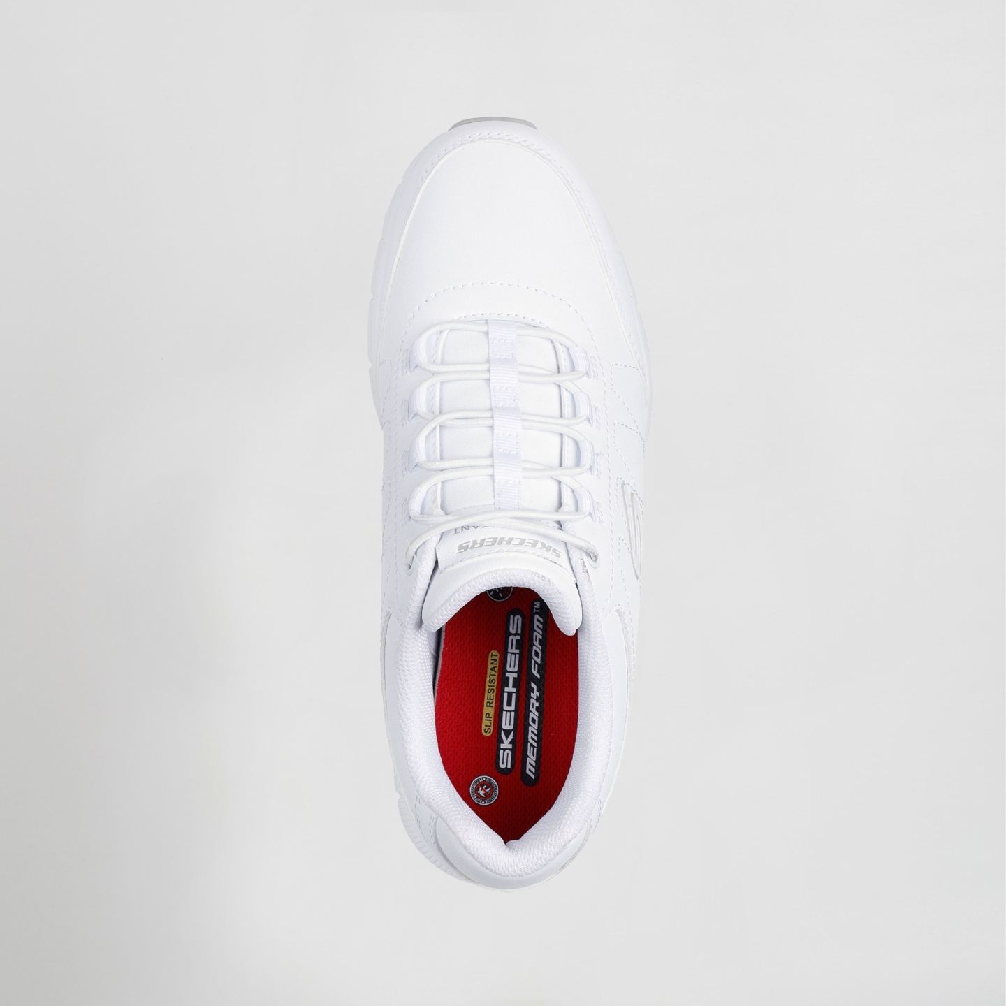 El Deportivo de Trabajo Skechers Nampa-Osil Hombre SK200272EC ofrece seguridad y comodidad para jornadas intensas. Su parte superior sintética con cordones elásticos y sistema No Tie Fit™ facilita un calce ágil, mientras que la plantilla Air-Cooled Memory Foam® amortigua y mejora la transpirabilidad. La suela con marcado antideslizante (SR) aporta agarre fiable en suelos exigentes, y el diseño ligero de corte deportivo reduce la fatiga.