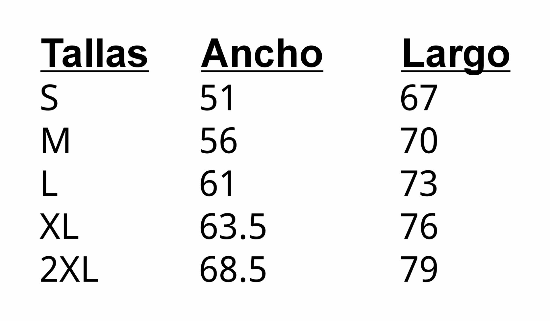 TallaS, M, L y XL. |