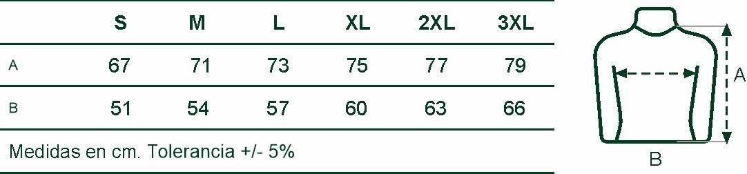 TallaS, M, L, XL, XXL y 3XL. |