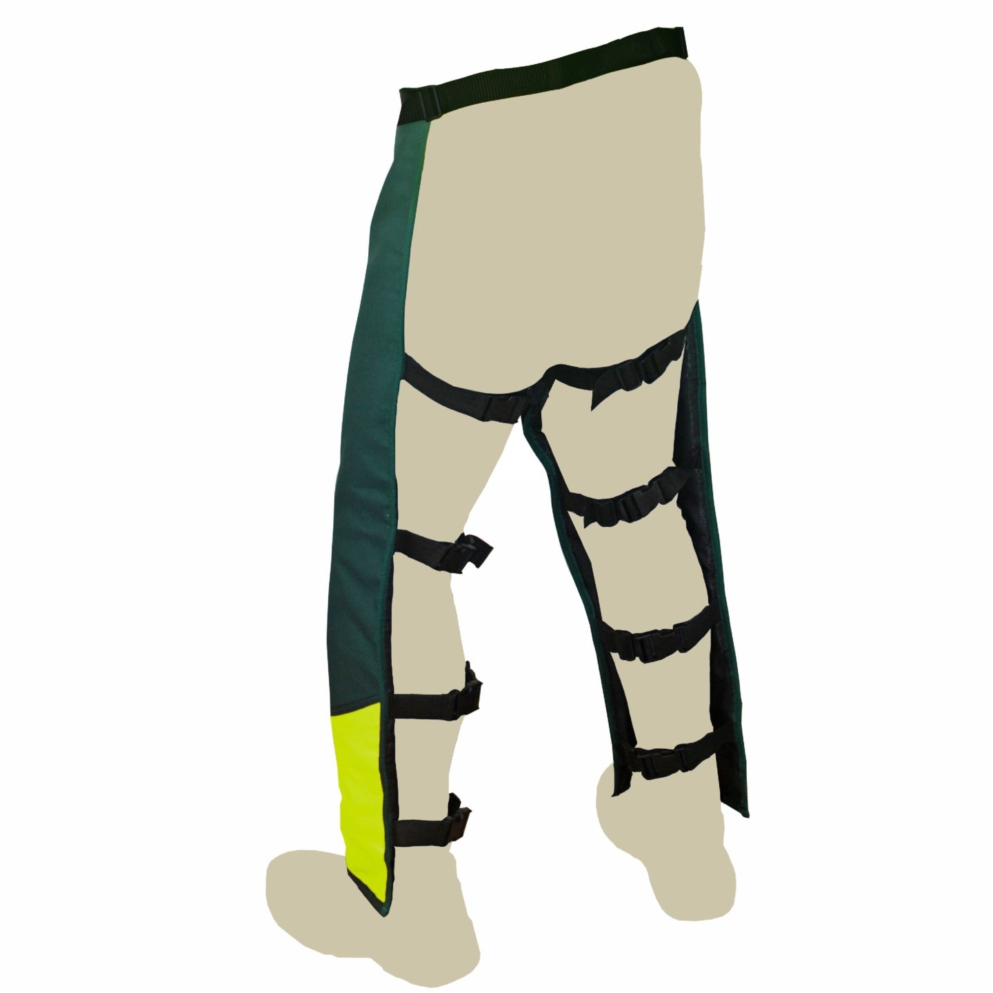Este equipo de protección forestal Clase 1 destaca por su ligereza y transpirabilidad. Al mantener la parte trasera abierta, facilita la ventilación constante, reduciendo el estrés térmico en entornos de trabajo exigentes. La combinación de colores verde y amarillo mejora la visibilidad del trabajador en zonas de vegetación densa, aumentando la seguridad pasiva en el tajo.
